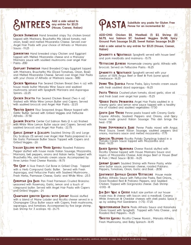 Please note: Prices and product availability are subject to change. Please contact us directly for information regarding our menu options.